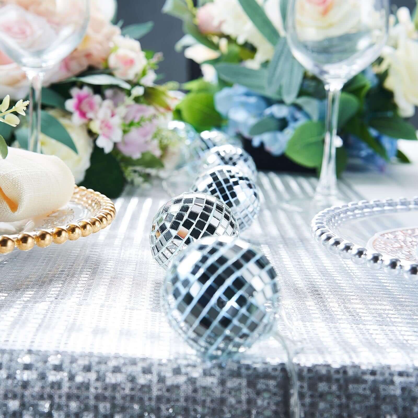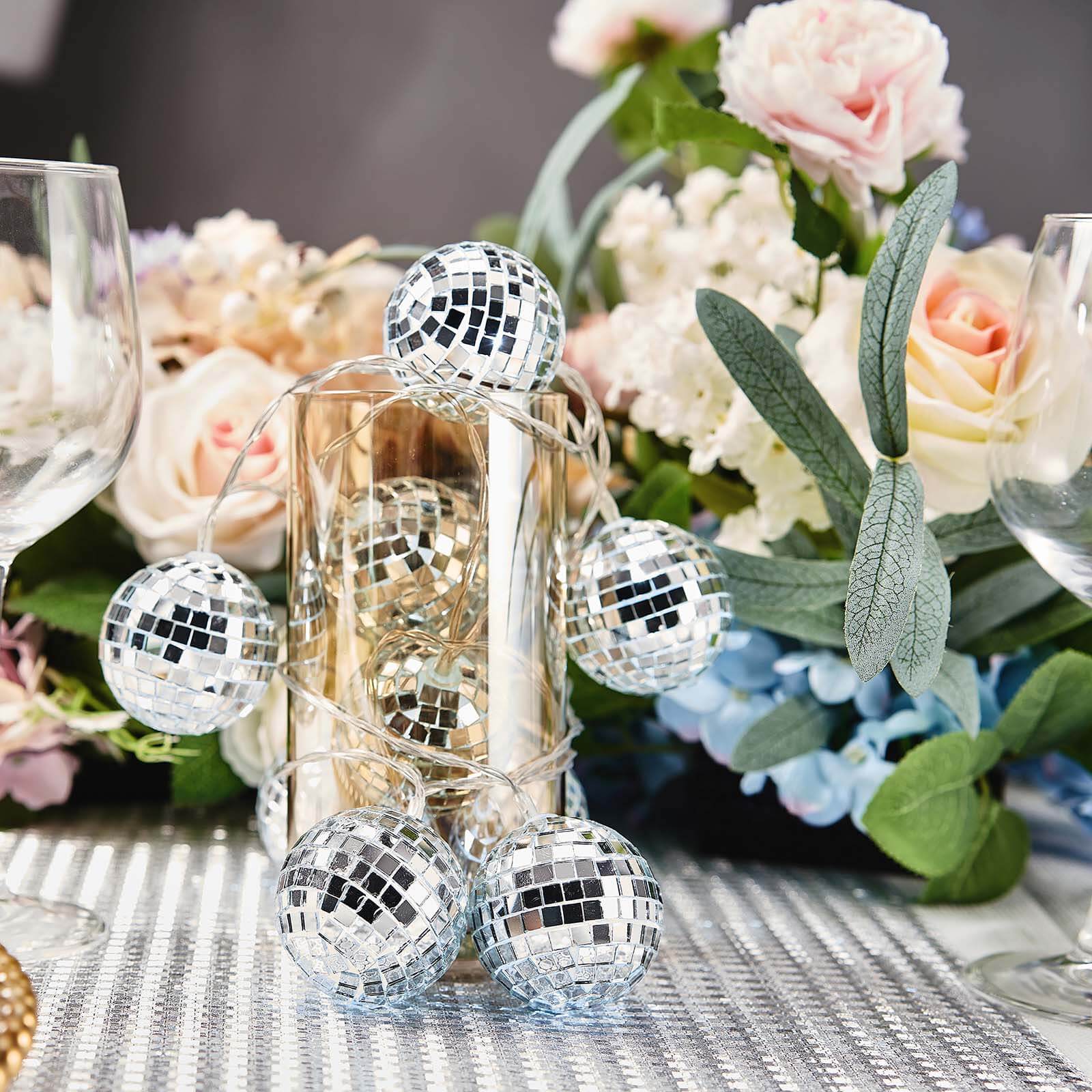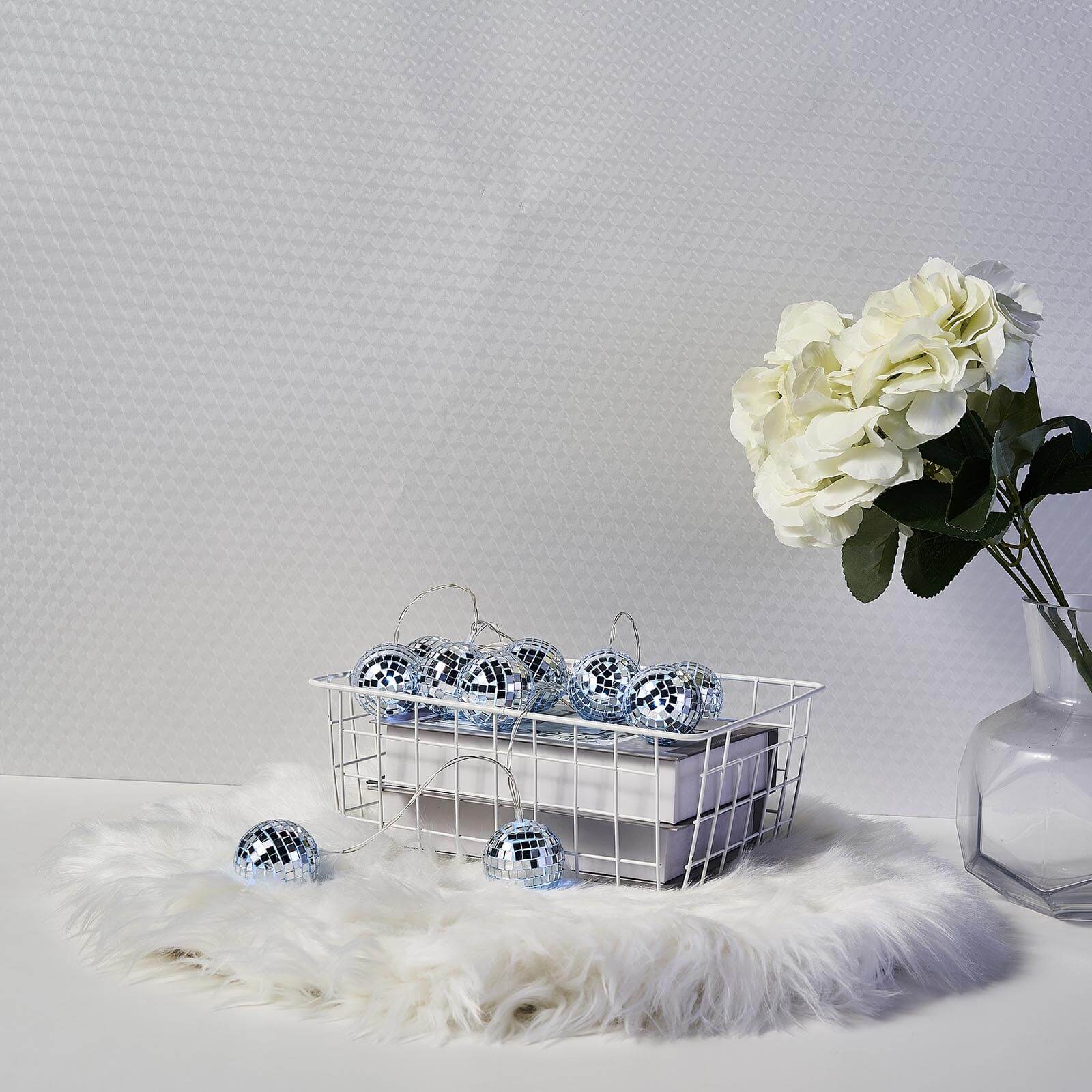 10 LED String Light Garland Silver Disco Mirror Ball Cool White - Battery Operated Decorative Lighting 6ft