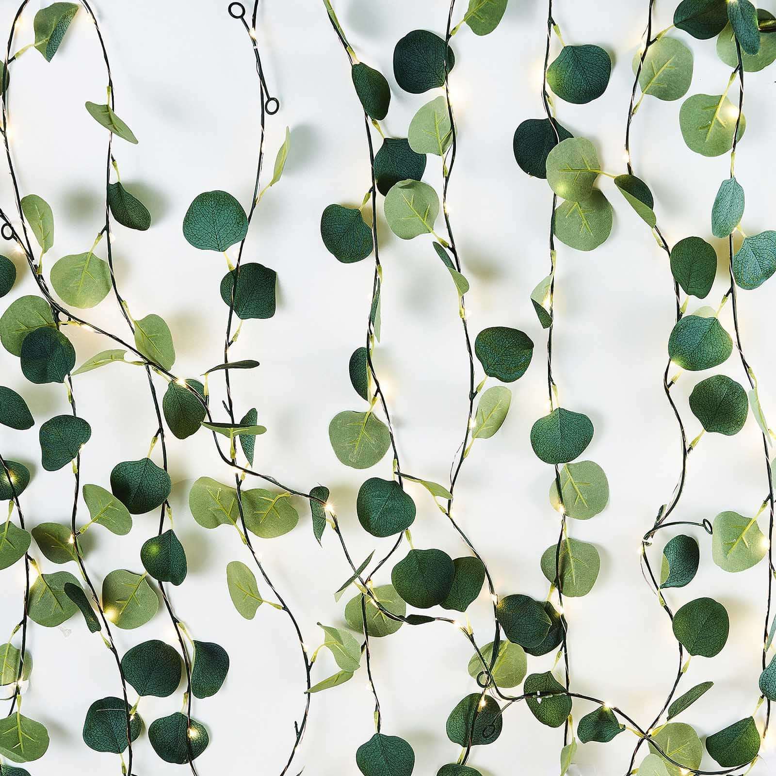 32ft 100 LED Green Silk Eucalyptus Leaf Garland Vine String Lights, Warm White Battery Operated