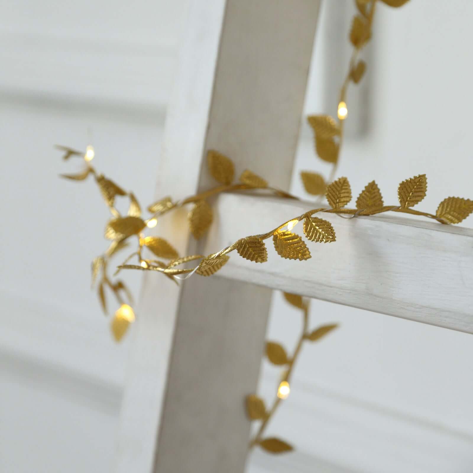40 LED Garland String Lights Rose Leaf Design Metallic Gold Warm White - Battery Operated Hanging Décor 15ft